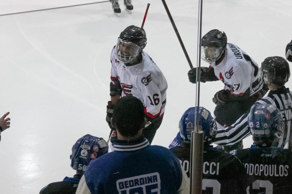 Less than 30 seconds into the final frame, the Eagles got the break they were looking for. Shifty forward Trevor Urquhart weaved his way into the Georgina zone before snapping a blocker side shot on goal. The Ice goaltender made the blocker save. However, a defender mistakenly batted the rebound out of the air into the Georgina net to give the Eagles the go-head goal.